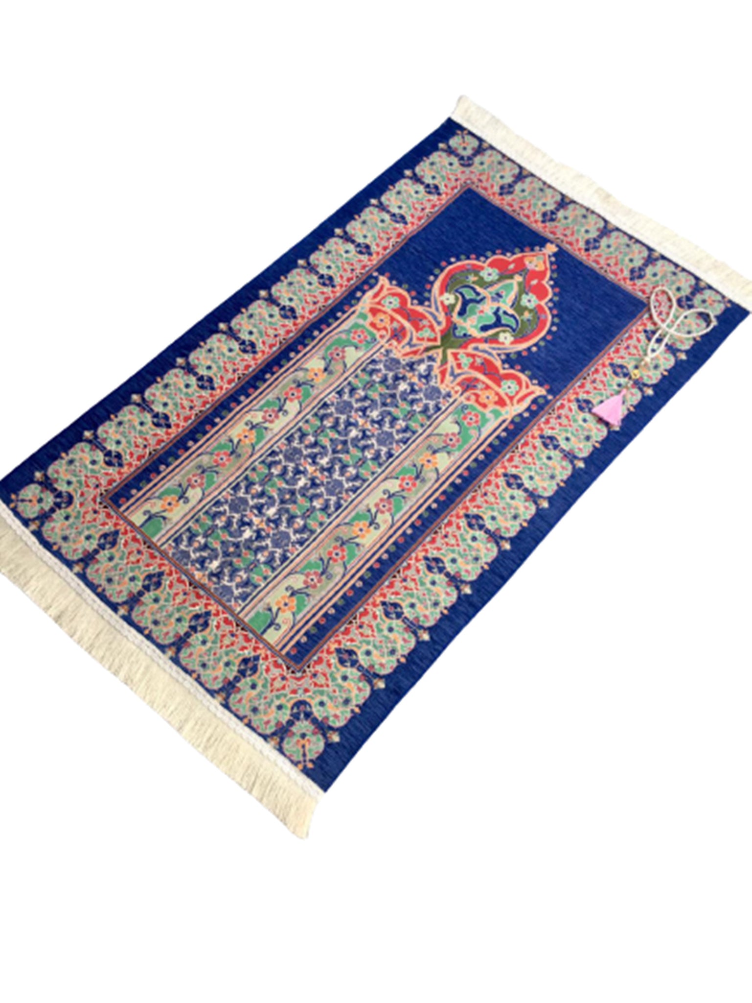 Prayer Mat | Ultra Lux Chenille Prayer Rug | Woven Sajdah | Musalla | Janamaz | Unique Islamic Gift | Blue Flower Arrow Prayer Mat