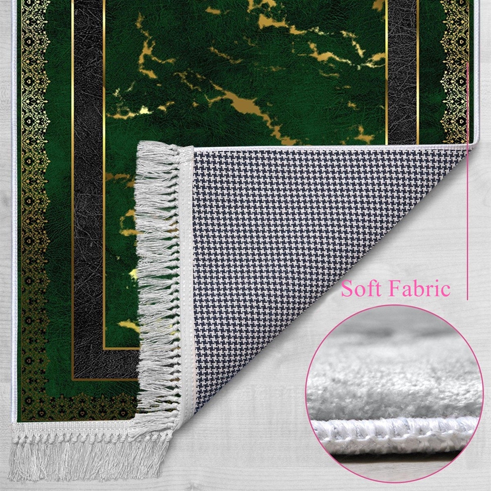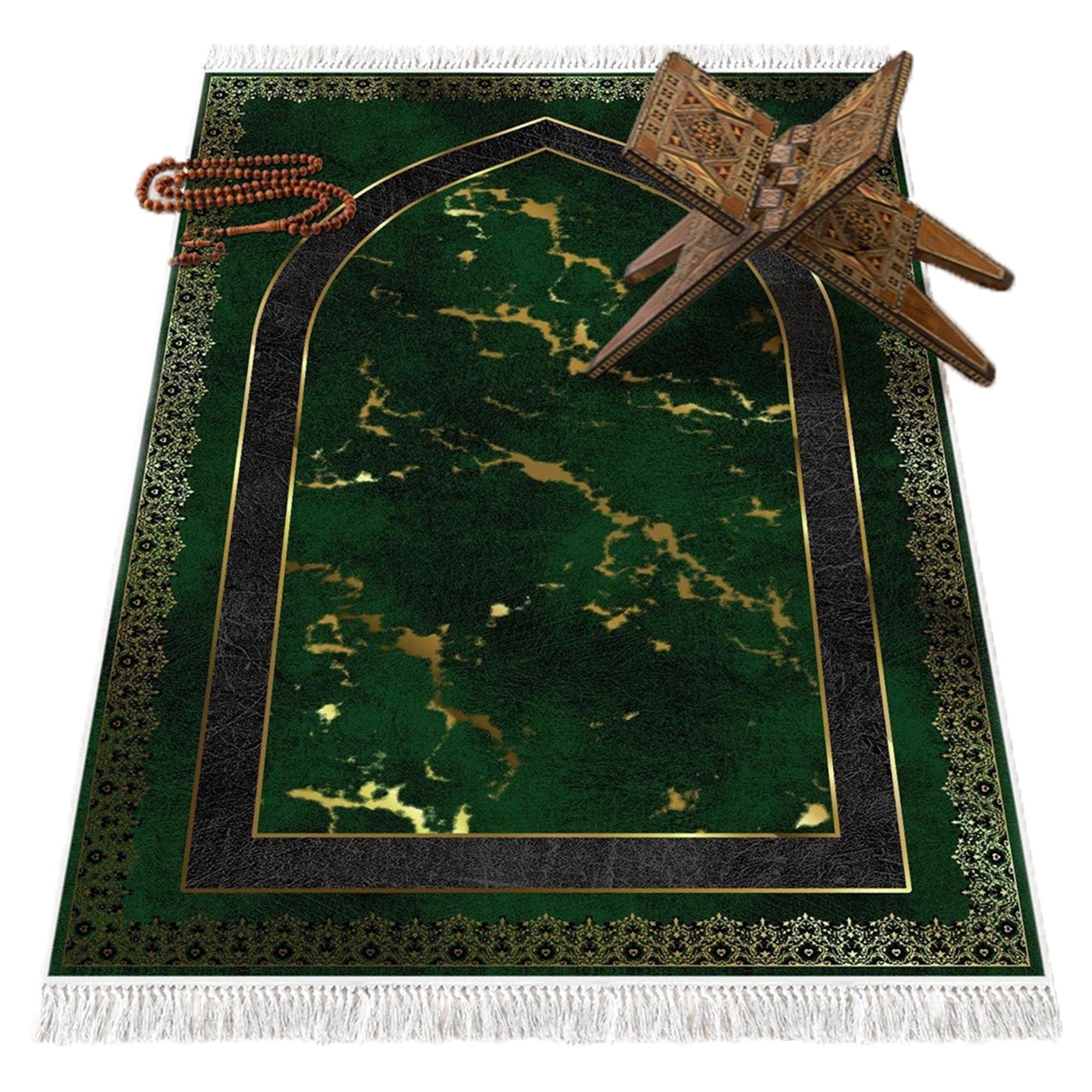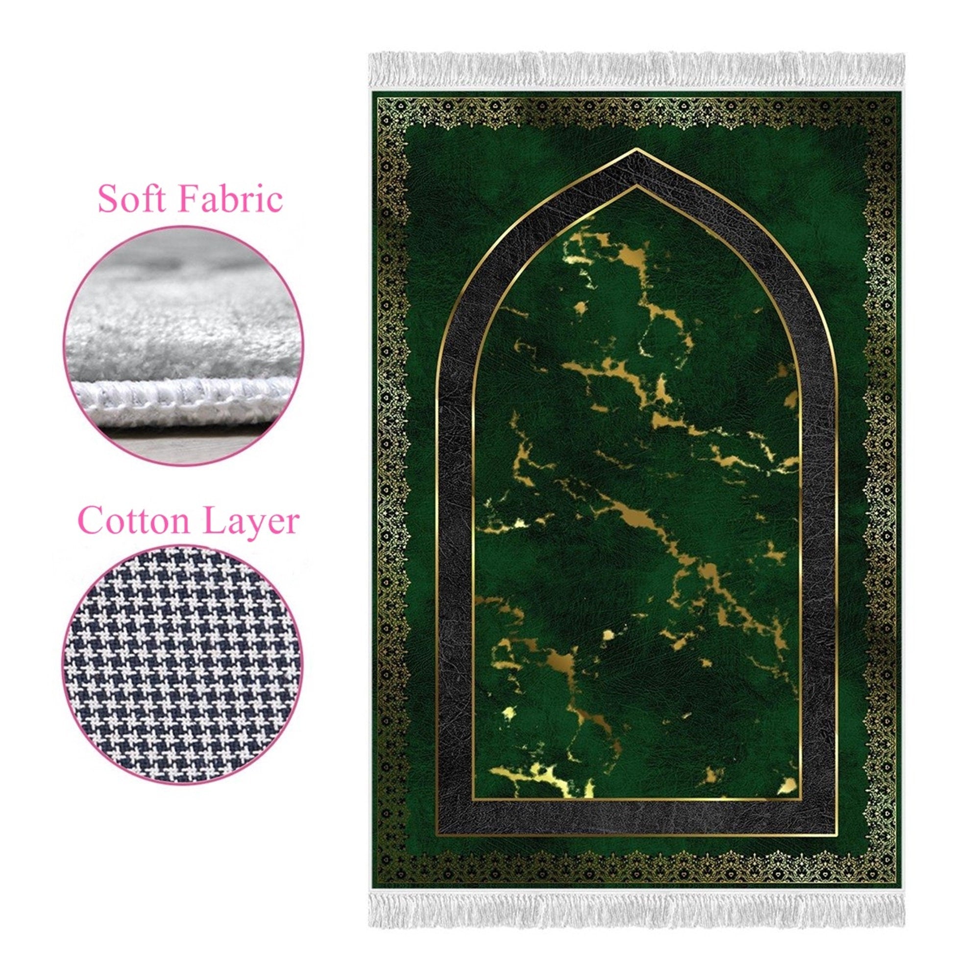 -This Prayer Rug has a soft thick comfort feel of the velvet-like fabric. It is thicker and bigger in size than a regular prayer mat and more like a carpet prayer rug. The entire back of this prayer mat has a no-slip grip, which ensures that the mat stays put on any type of surface.