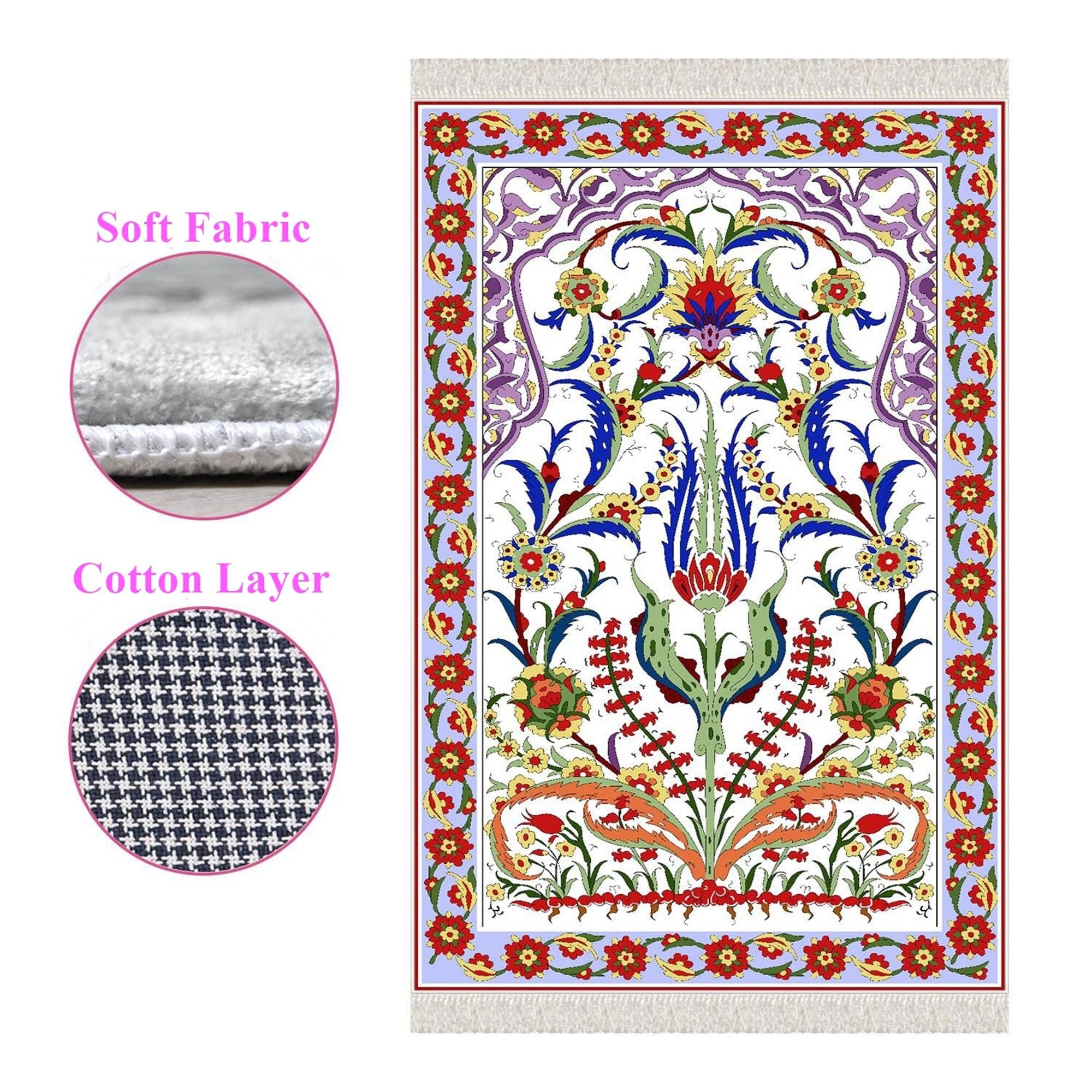 Ottoman Tulips Soft Padded Prayer Rug | Cotton Layer Janamaz | Anti Slip Backing Bamboo Cotton Prayer Mat | Islamic Gifts