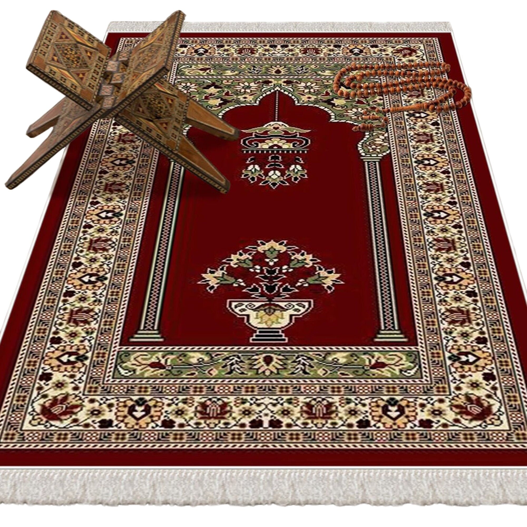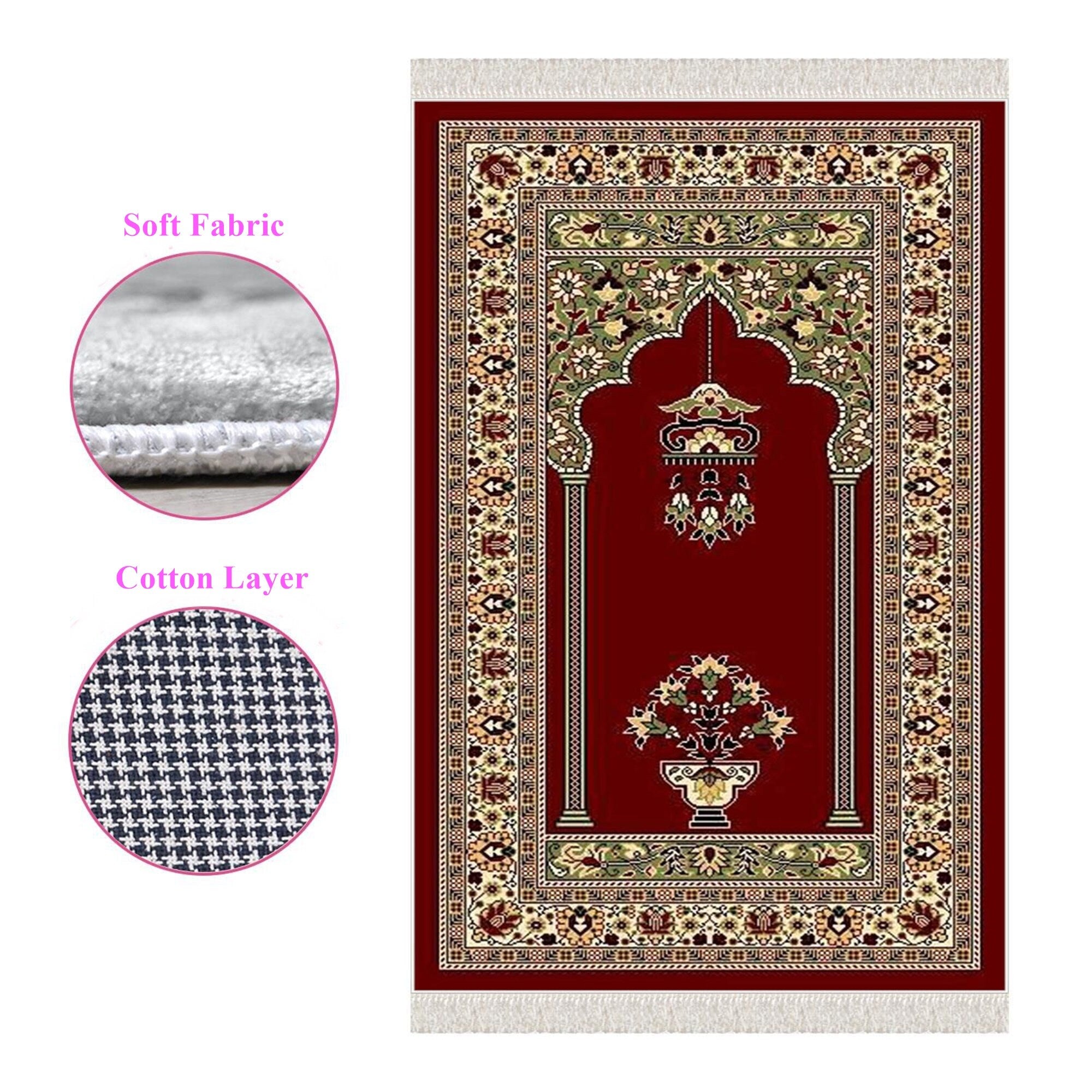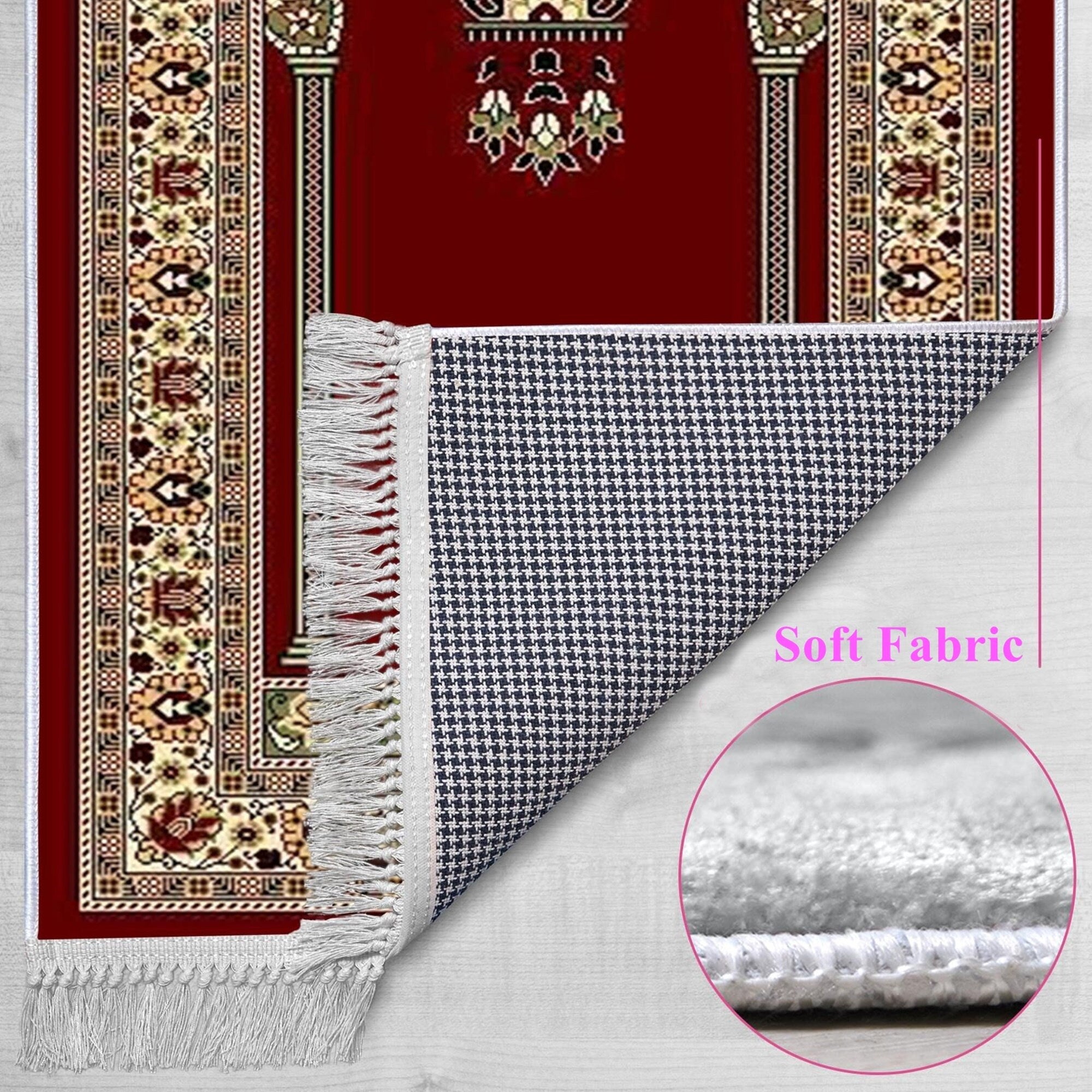 Red Carpet Soft Padded Prayer Rug | Cotton Layer Janamaz | Anti Slip Backing Bamboo Cotton Prayer Mat | Islamic Gifts