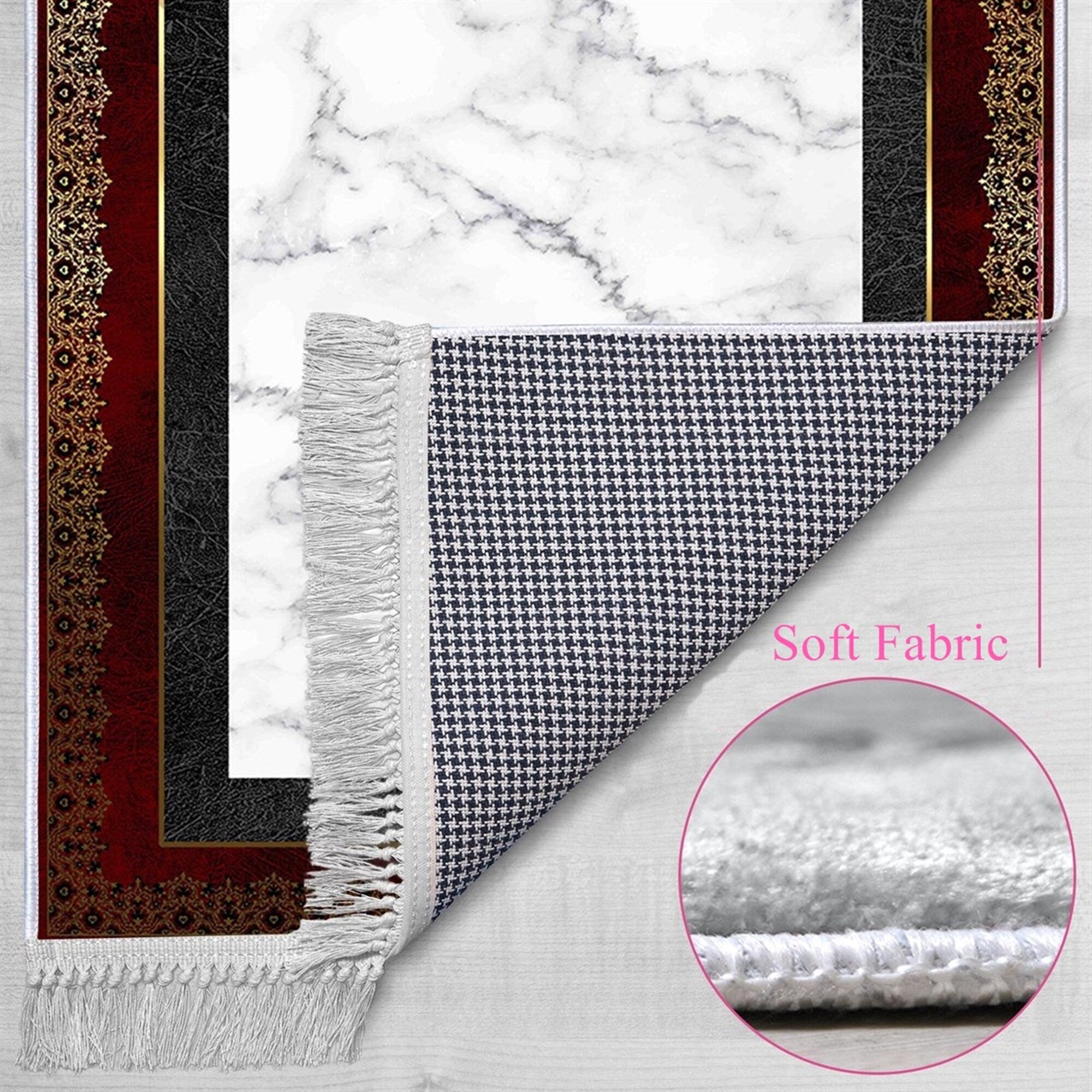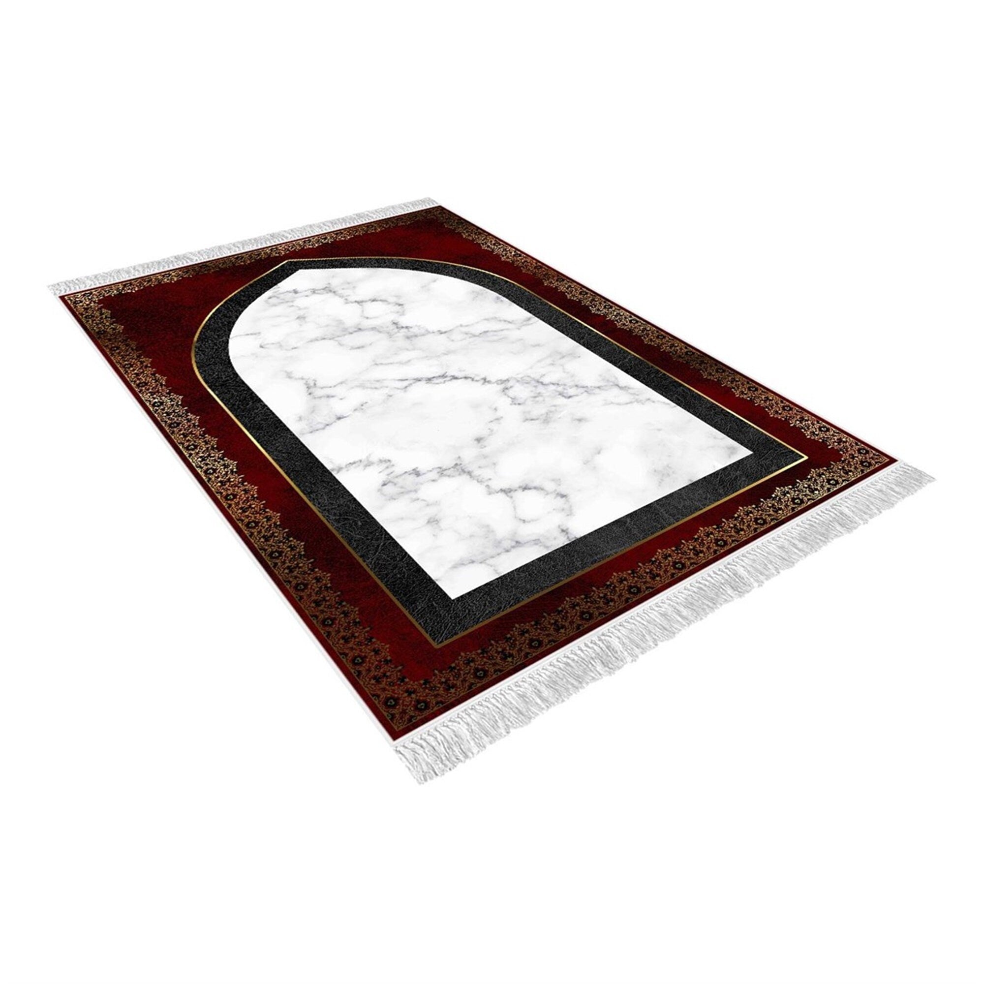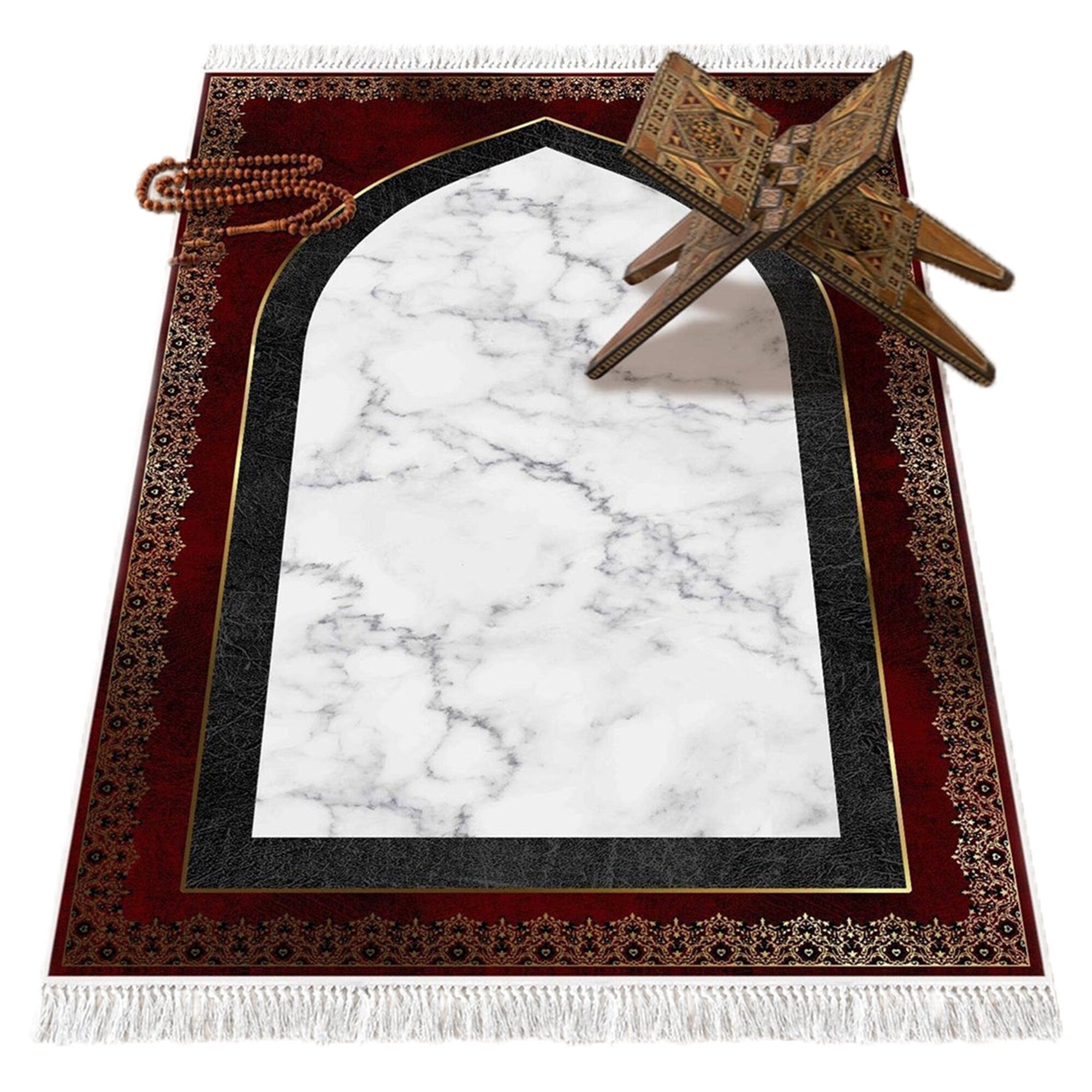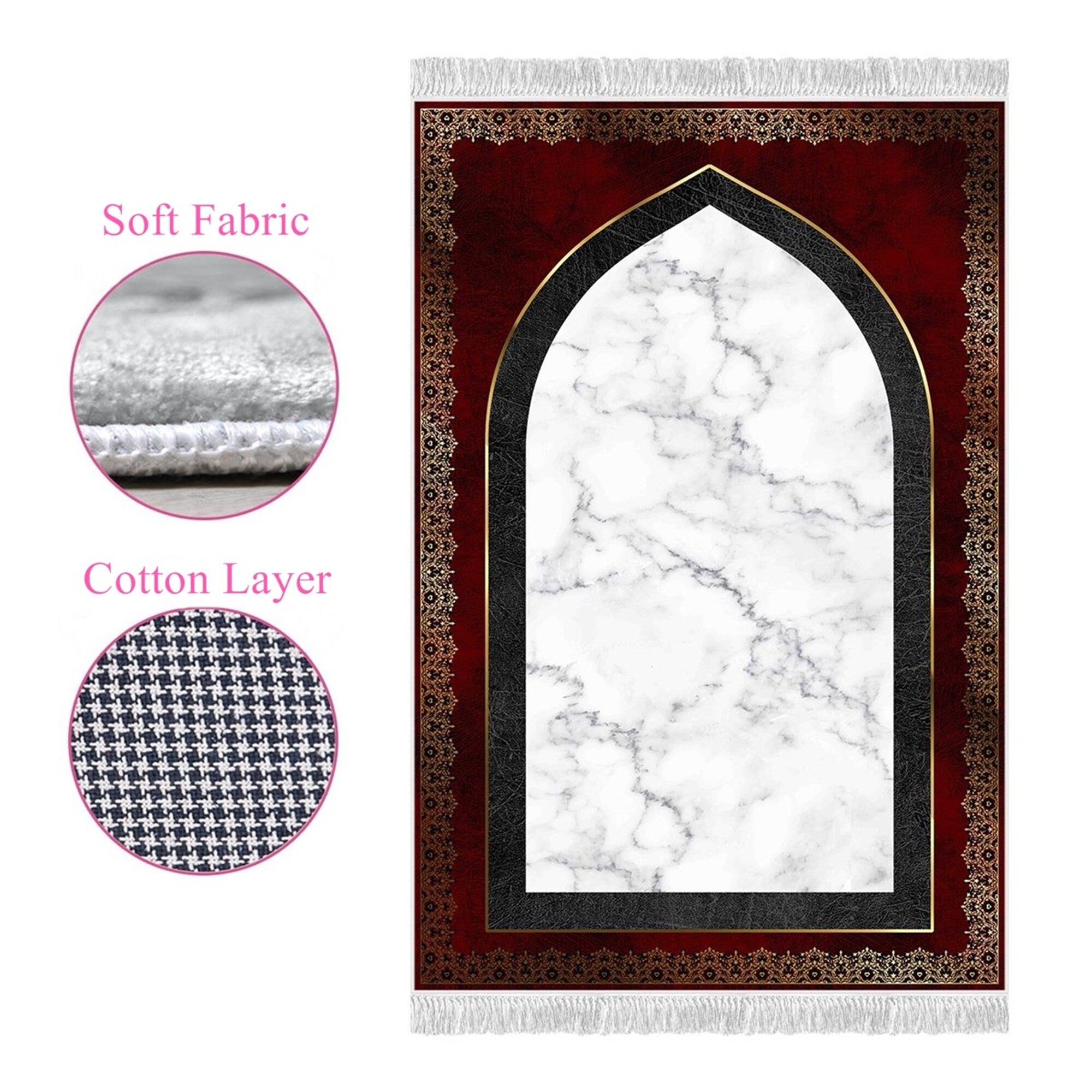 -This Prayer Rug has a soft thick comfort feel of the velvet-like fabric. It is thicker and bigger in size than a regular prayer mat and more like a carpet prayer rug. The entire back of this prayer mat has a no-slip grip, which ensures that the mat stays put on any type of surface.