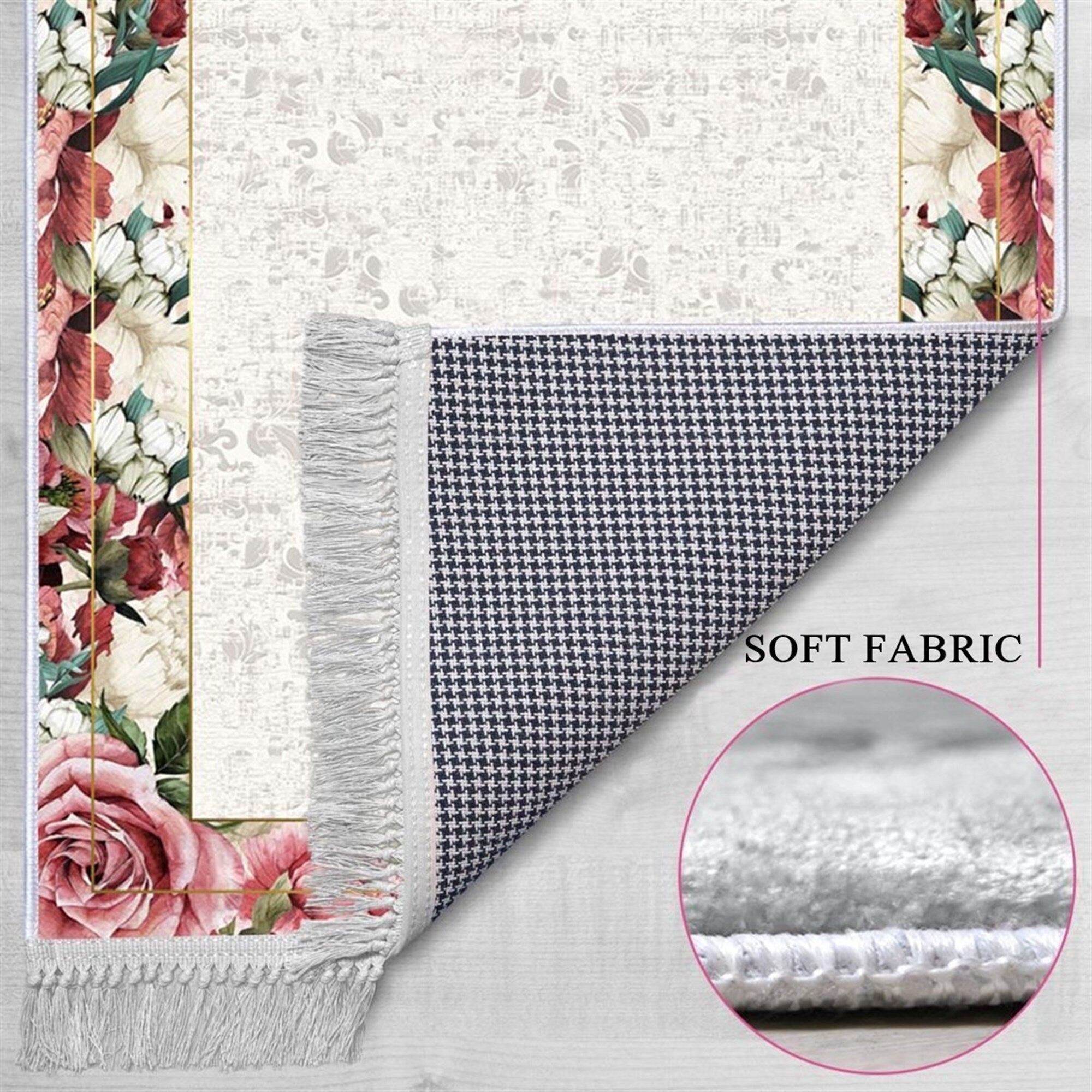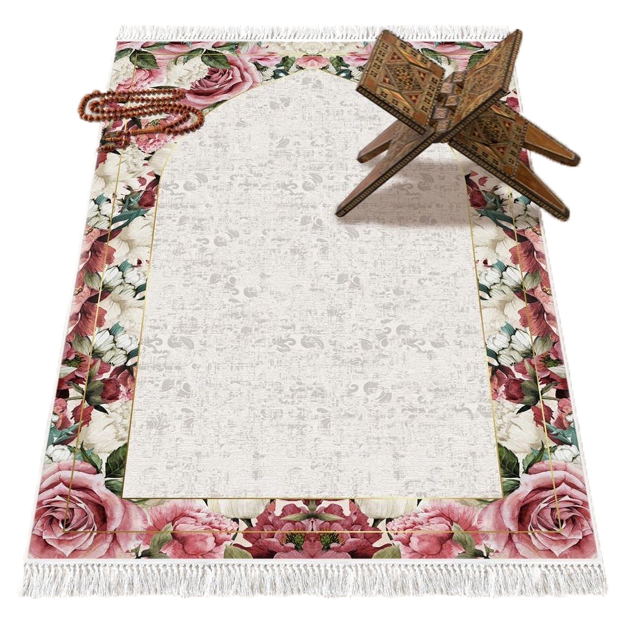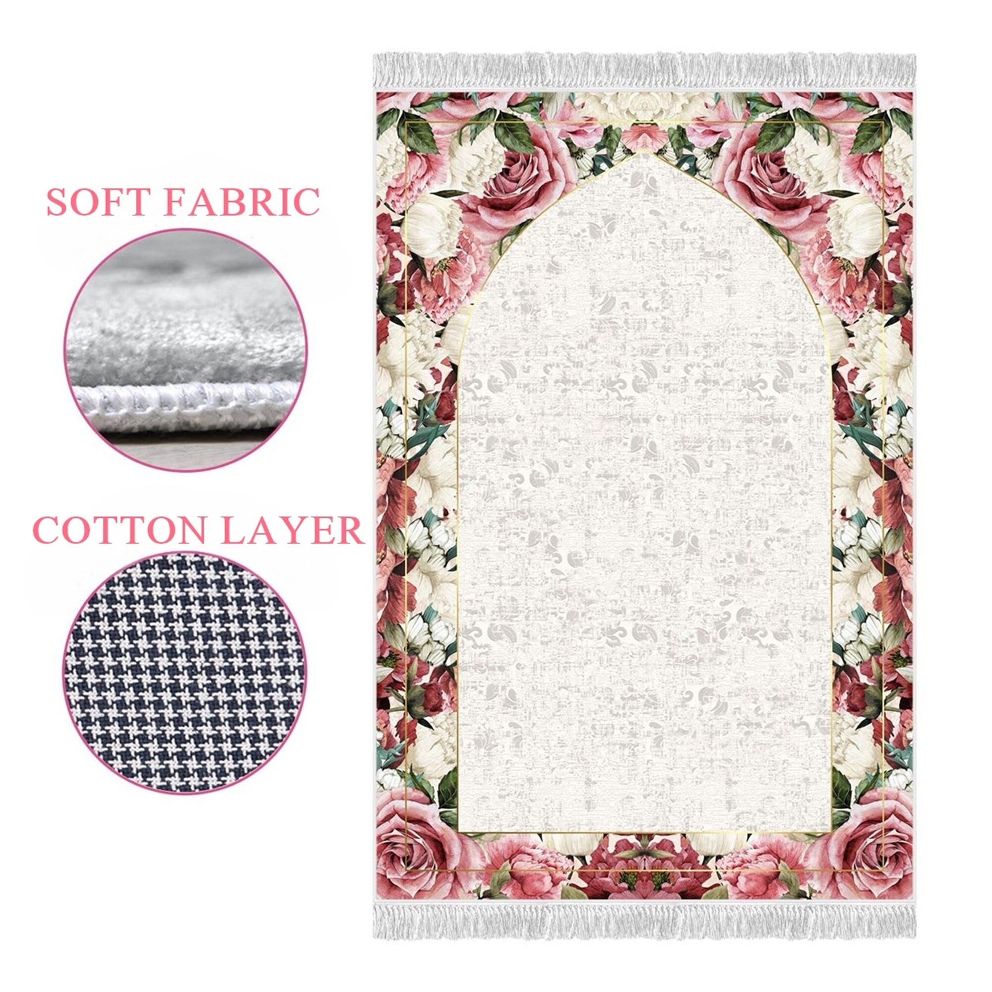 -This Prayer Rug has a soft thick comfort feel of the velvet-like fabric. It is thicker and bigger in size than a regular prayer mat and more like a carpet prayer rug. The entire back of this prayer mat has a no-slip grip, which ensures that the mat stays put on any type of surface.