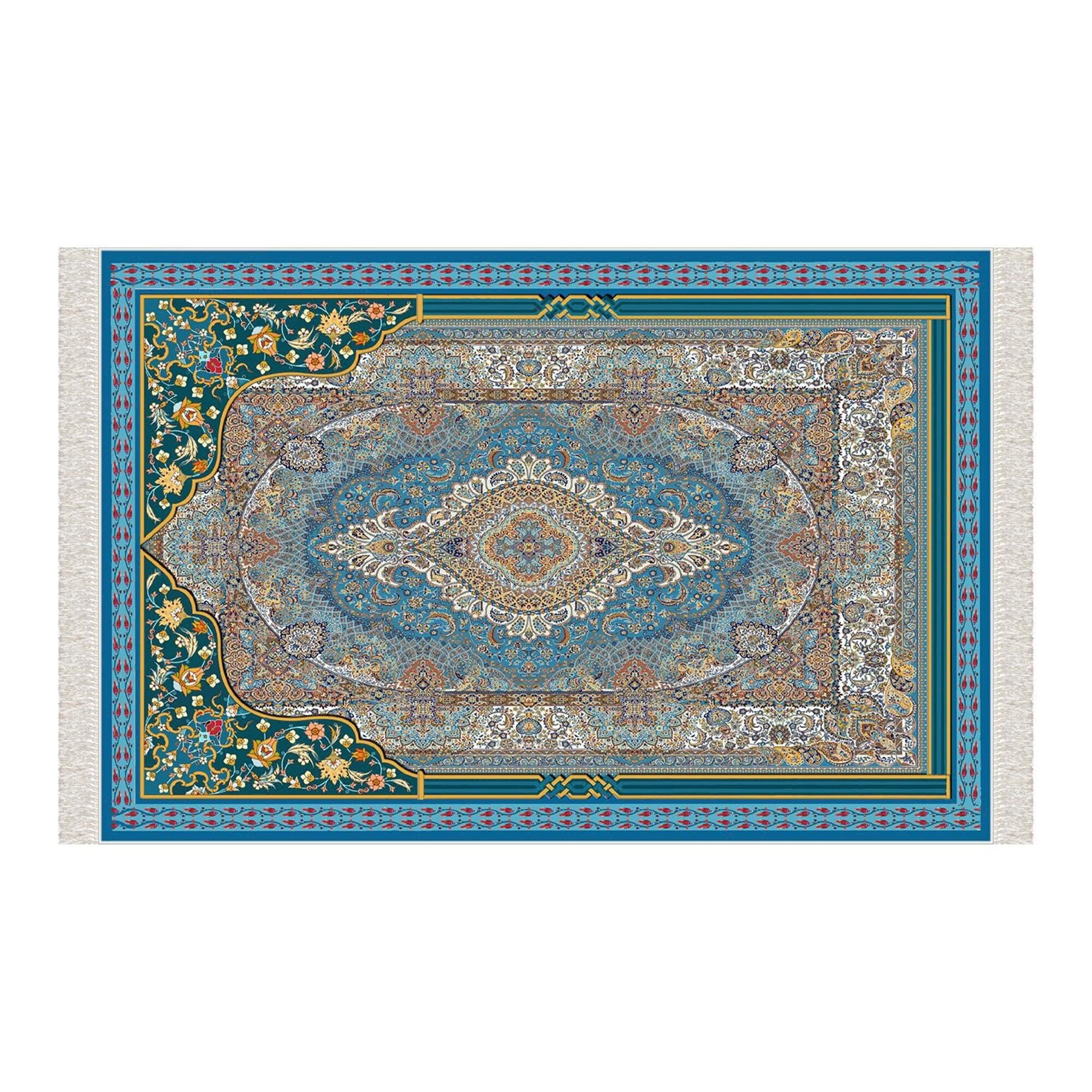 Traditional Motif Blue Carpet Soft Padded Prayer Rug | Cotton Layer Janamaz | Anti Slip Backing Bamboo Cotton Prayer Mat | Islamic Gifts