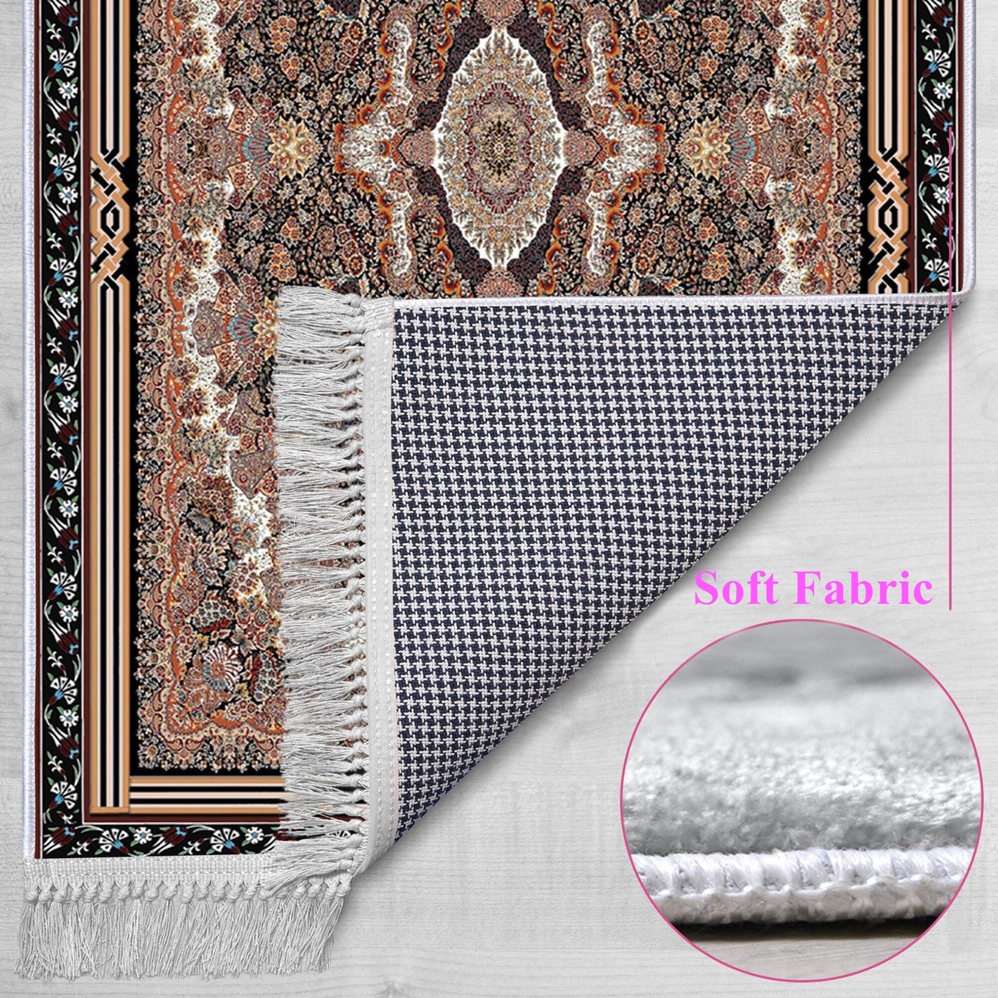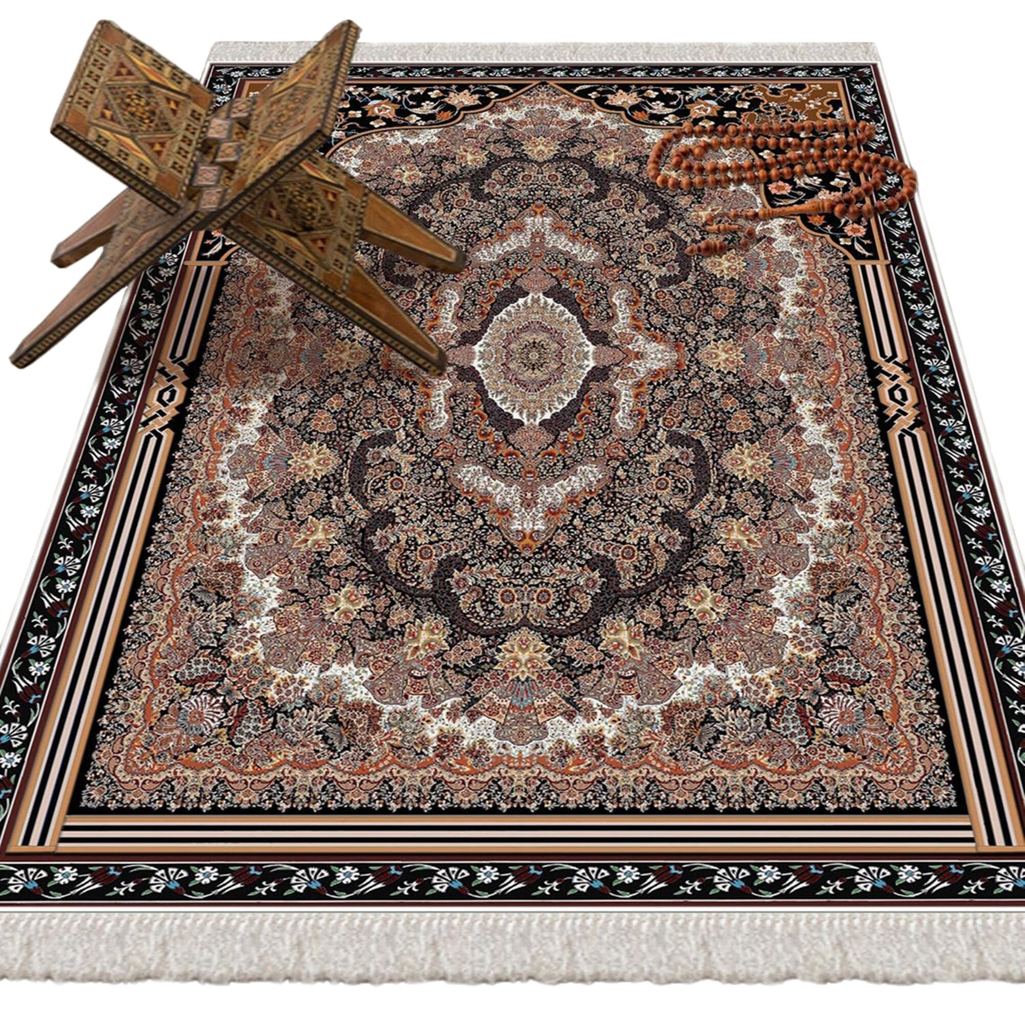 -This Prayer Rug has a soft thick comfort feel of the velvet-like fabric. It is thicker and bigger in size than a regular prayer mat and more like a carpet prayer rug. The entire back of this prayer mat has a no-slip grip, which ensures that the mat stays put on any type of surface.