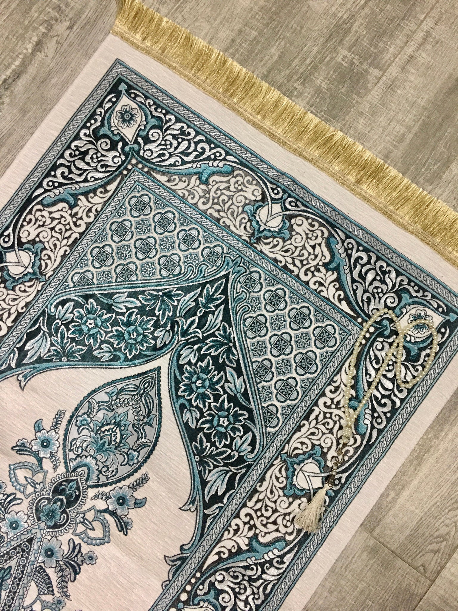 Turquoise Dream Prayer Mat, Prayer Mat with Tasbeeh, Prayer Rug, Muslim Janamaz, Namaz Rug, Musallah, Islamic Gift