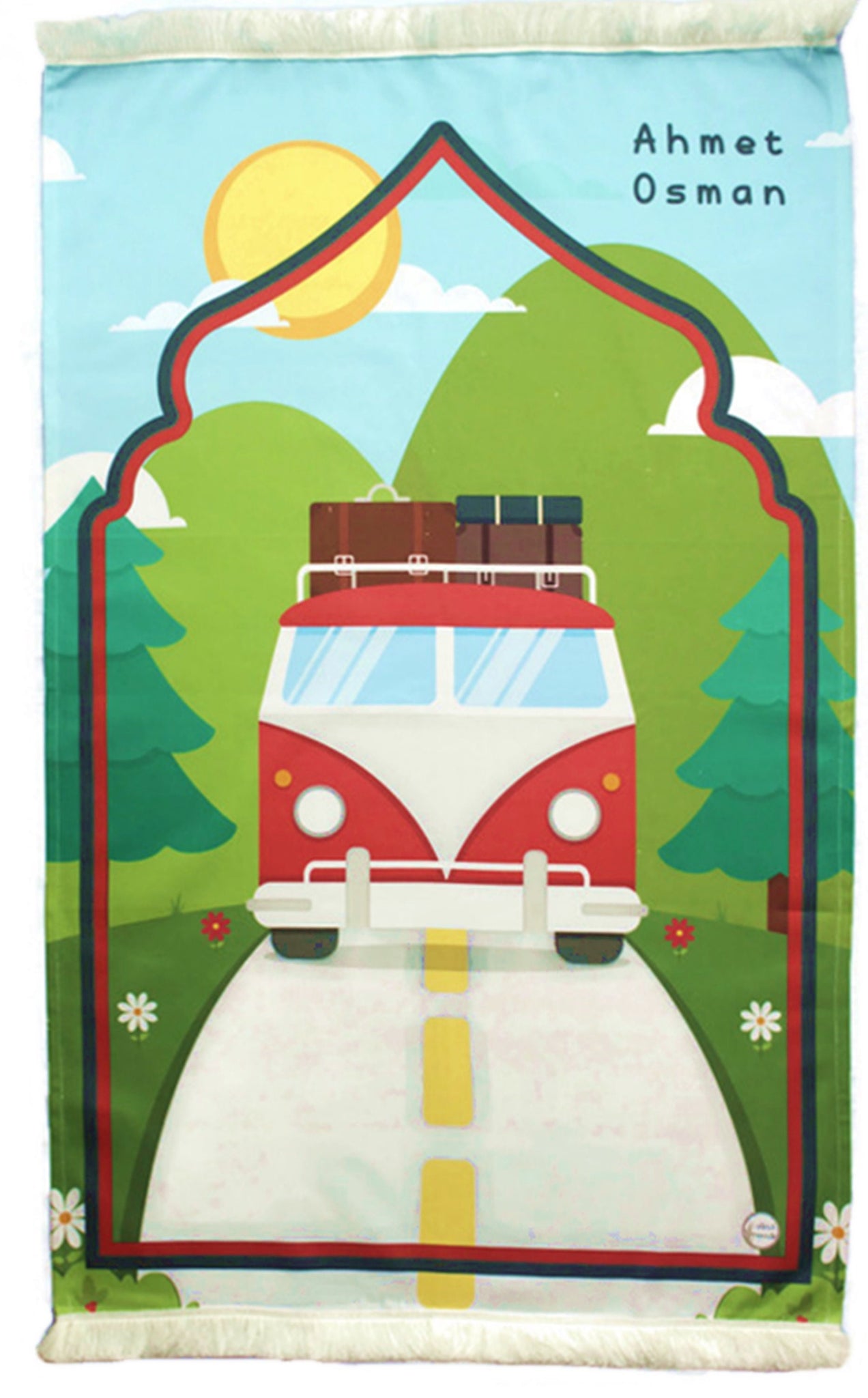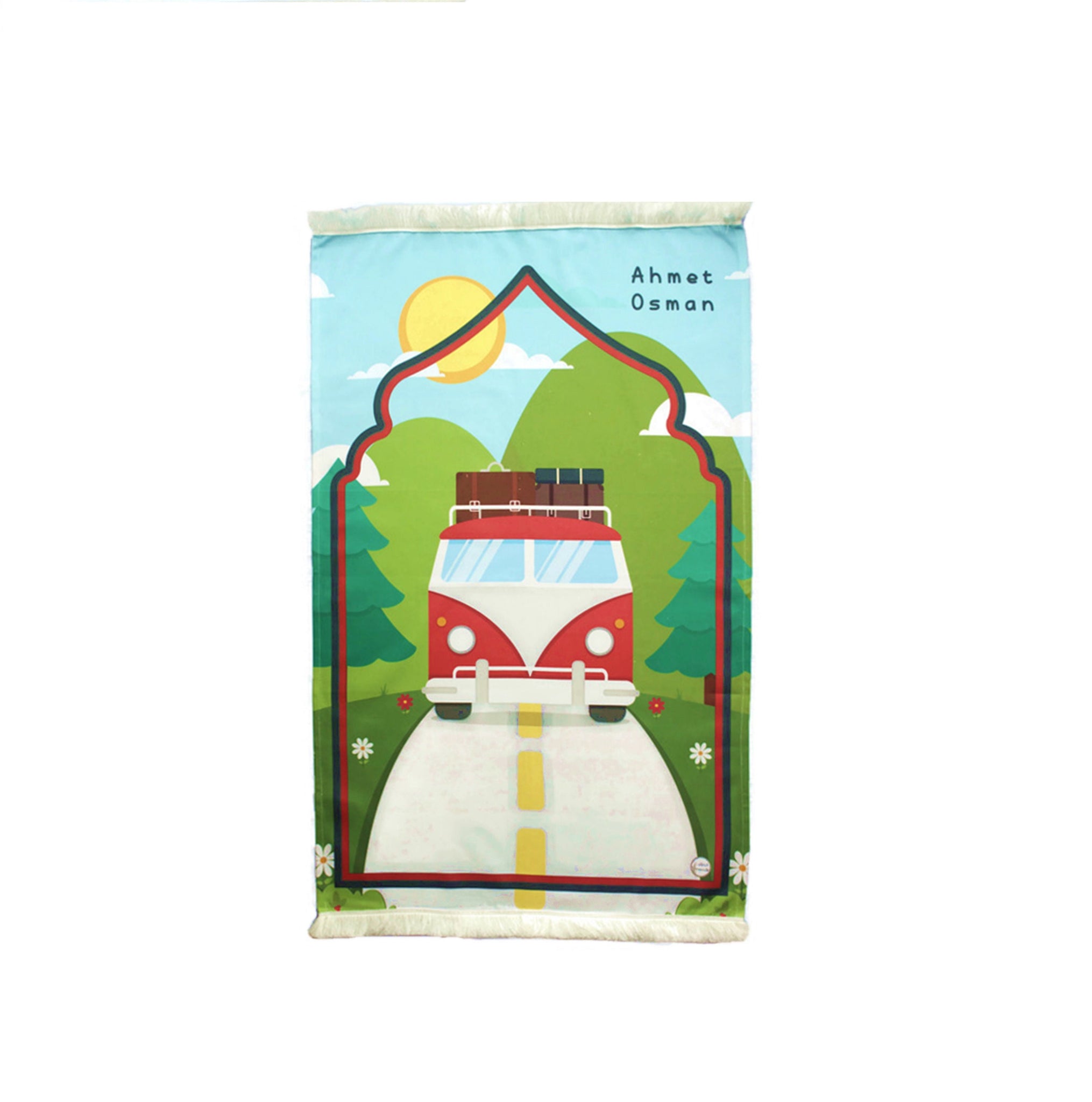 Personalized Prayer Mat for Kids, Red Car Islamic Praying Rug for Children, Educational Prayer Mat, Janamaz Muslim Child My First Prayer Mat